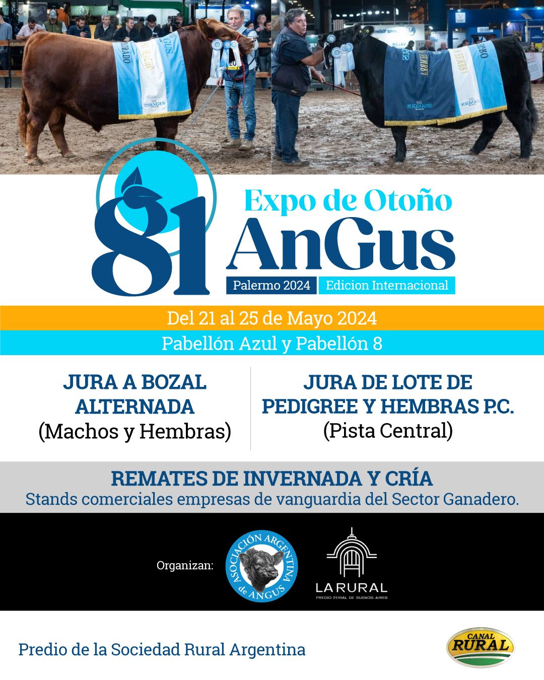 81° Expo Angus de Otoño Indoor Internacional | del martes 21 de mayo al viernes 24 de mayo de 2024 | La Rural de Palermo | Av. Sta. Fe 4201, C1425BHF, CABA, Buenos Aires.