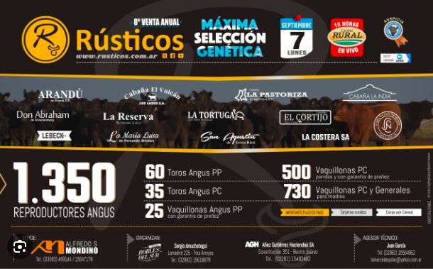 Remate Rústicos "Máxima selección genética" | Jueves 7 de septiembre | Modalidad: Remate físico y vía streaming | 15hs. | CABA, Buenos Aires | Remata Alfredo S. Mondino