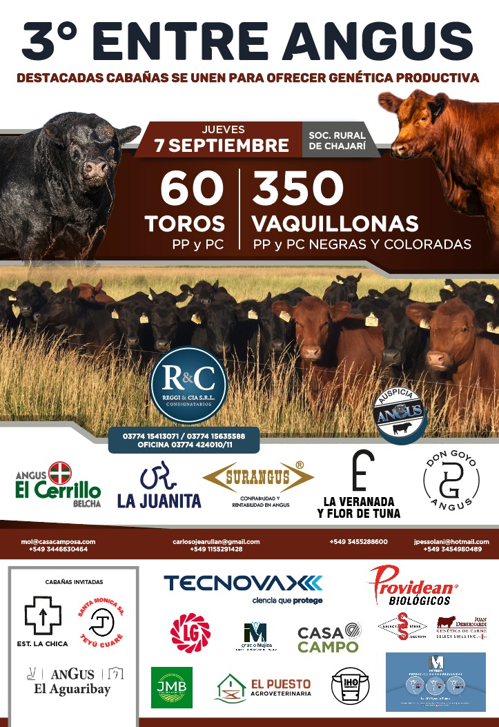 Remate "Entre Angus" | Jueves 7 de septiembre | Modalidad: Remate físico | 14hs. | Chajarí, Entre Ríos | Remata Reggi y Cía.