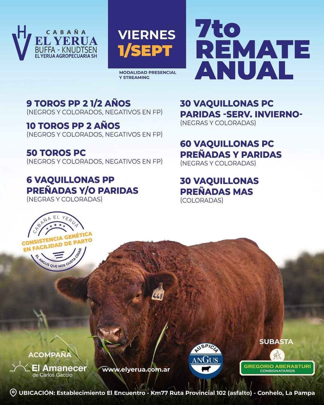 Remate "El Yeruá" | Viernes 1 de septiembre | Modalidad: Remate físico y vía streaming | 13hs. | Conhelo, La Pampa | Remata Gregorio Aberasturi