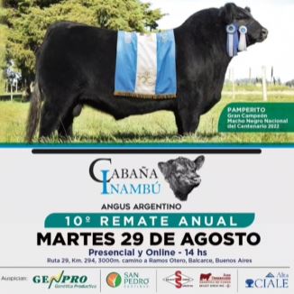 Remate "Inambú" martes 29 de agosto de 2023 14hs, Balcarce, Buenos Aires. Remate presencial y por streaming.