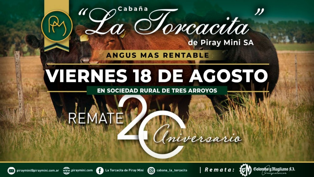 Remate "La Torcacita" Viernes 18 de agosto de 2023, Tres Arroyos, Buenos Aires. Remata: Colombo y Magliano S.A.
