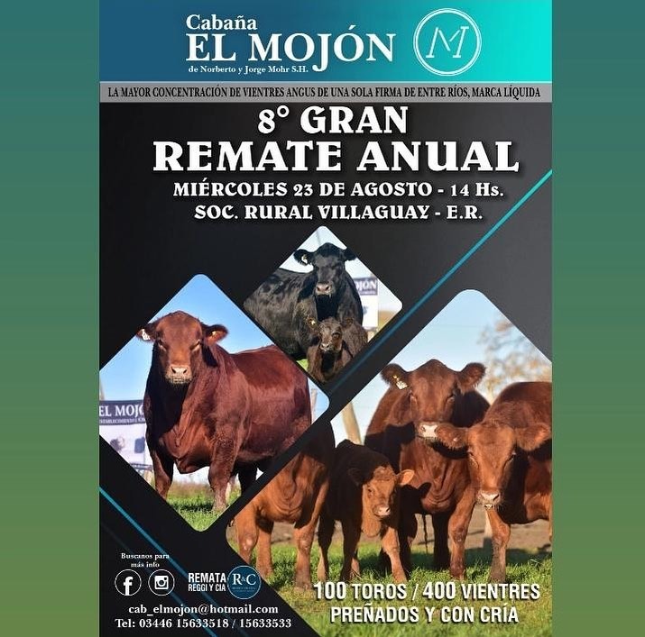 Remate "El Mojón". Miércoles 23 de agosto de 2023 14hs. Sociedad Rural de Villaguay, Entre Ríos.