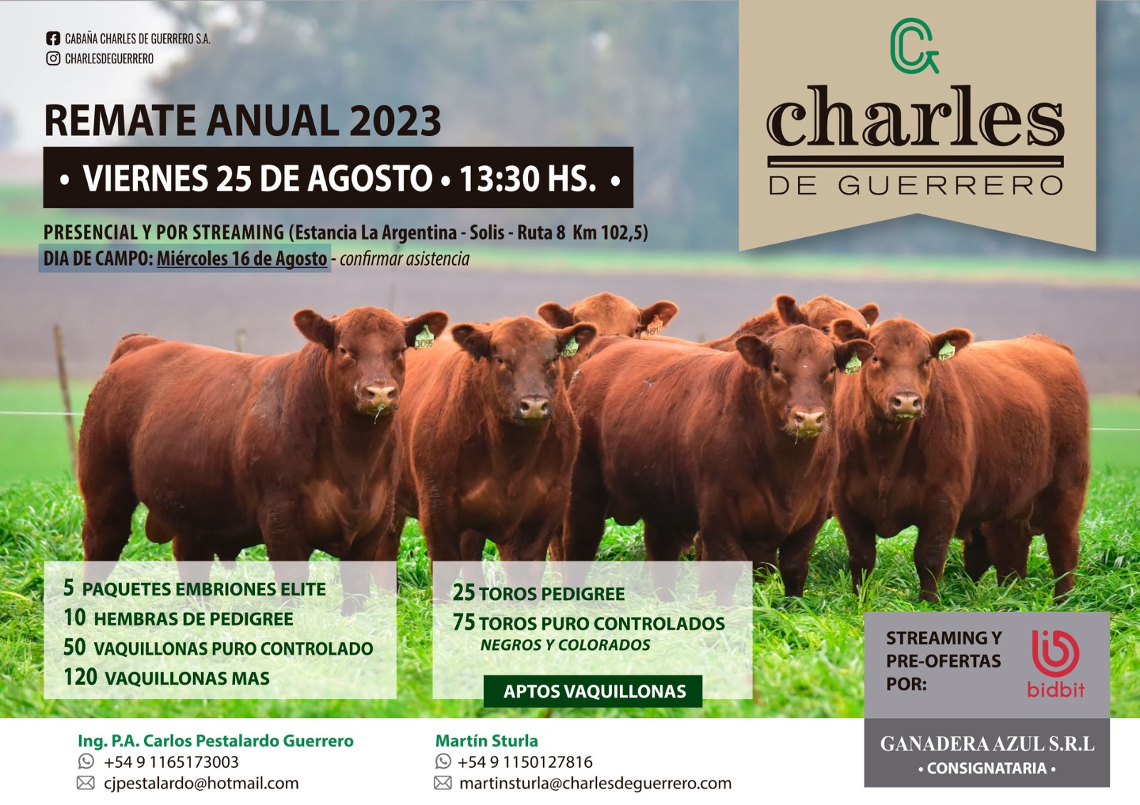 Remate "Charles de Guerrero". Viernes 25 de agosto de 2023 13:30hs. Solís, Buenos Aires. Remate presencial y por streaming